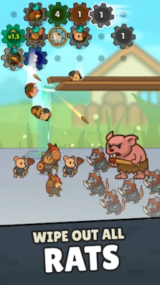 In Underbite: Rat Rumble Idle War, you take on the role of a commander in the Alliance's front line fight. Your main weapon is a chaotic, wheel-powered war machine that you must constantly upgrade in order to survive in the ongoing battle against enemy rats and bosses controlled by the Rusty Trap. This is an idle strategy game where your ingenuity and resource management skills are crucial for victory.