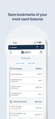 This application allows you to easily manage your UNFCU accounts, including savings and checking accounts, credit cards, loans, and mortgages. With just a few taps, you can view your current balance and transactions from the past 90 days for each account. This gives you a comprehensive overview of your financial activity and helps you stay on top of your finances.