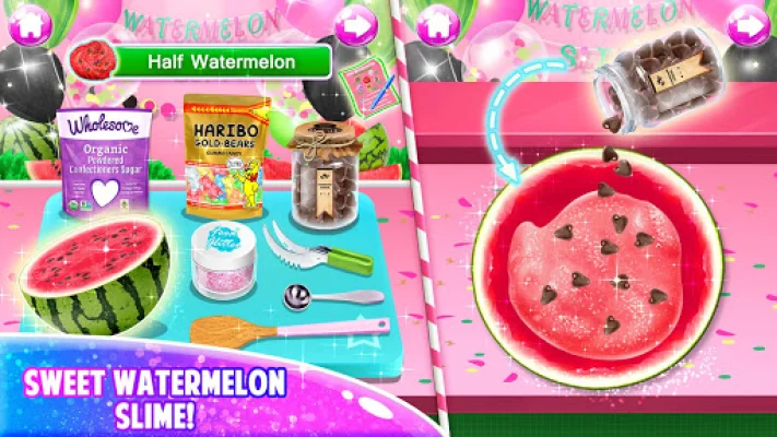 This is a super fun DIY game where you can make your own edible slimes! There are tons of crazy and delicious slimes to choose from, and new ones are added every week to keep the game exciting. You can make all sorts of cool edible slimes like Ice Cream Slime, Gummy Bear Slime, Marshmallow Slime, and even Chocolate Poop Emoji Slime. The options are endless! To play, you'll have access to a variety of realistic slime DIY tools such as bowls, spatulas, measuring cups, and even an oven and microwave. You can also use fun tools like piping bags, butter knives, and food mashers to create your perfect slime. And of course, there are tons of ingredients to choose from like marshmallows, chocolate, gummy candies, and more to make your slime unique and tasty. To get started, simply use the interactive controls to follow the recipes and mix your ingredients together. You can experiment with different combinations to create your own special flavor and color. And don't forget to decorate your slime with sprinkles, glitters, and fun unicorn decorations. Once your slime is ready, you can store it in the refrigerator and even eat it to trigger some rainbow magic! This game is not only fun, but it also encourages creativity and originality. You can try to come up with your own unique slimes and make them SEO-friendly. So, if you're looking for a fun and tasty DIY game, this is the one for you!