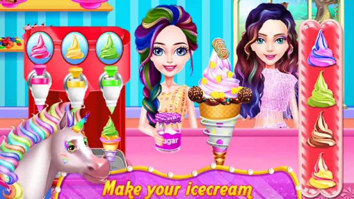 Unicorn Creatures is an interactive game that allows players to explore the magical world of unicorns. These creatures are known for their intelligence and loyalty, but can also be quick to anger when faced with disloyalty. Players have the opportunity to dress up and do makeup for their cute unicorns, making them look like humans. They can also celebrate birthdays and have smoothie shake parties with their beloved unicorns. Additionally, players can make ice cream with delicious flavors and style their unicorns' hair in perfect fashion.