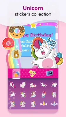 Our app offers a variety of amazing features that make each invitation extra special. You can choose from a collection of pre-designed unicorn cards, add your favorite photo using the kids' invitation card maker with photo, and enhance your invitations with colorful unicorn stickers and emojis.