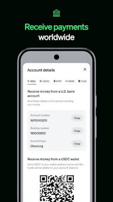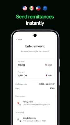UniFi also allows for instant transfers of PHP, MXN, or EUR to local bank accounts and wallets. This feature is especially useful for individuals who need to send money to family members or make payments in different currencies. Users can also receive funds through various methods such as ACH, wire, SEPA (IBAN), or SPEI (CLABE).