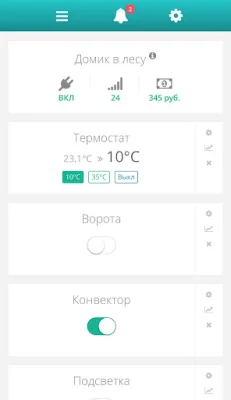Unimon - это приложение, которое работает с различными датчиками, такими как температура, влажность, давление, освещенность, протечка, дым, движение, открытие двери, уровень жидкости, разбитие стекла и многими другими. Оно позволяет управлять отоплением, кондиционированием, вентиляцией, насосами и другим электрооборудованием как вручную, так и автоматически по расписанию или сценарию.