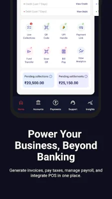 Union eBiz also offers various collection options, including POS, Bharat QR, and payment links. You can easily accept payments through these channels and manage them directly from the app. The app also provides real-time insights and analytics, allowing you to track your cash flow, settlements, and business trends through detailed reports and dashboards.