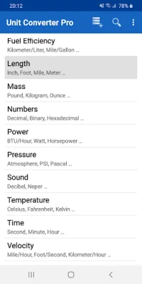 The app covers a wide range of conversion categories, including angle, area, currency, data storage, data transfer, density, flow, fuel efficiency, numbers, power, pressure, sound, velocity, and many more. It caters to both imperial and metric conversions, making it a useful tool for users from different regions.