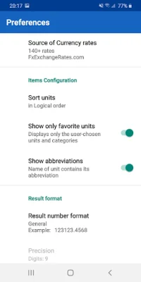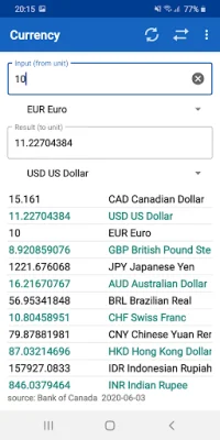One of the key features of this app is its simplicity and ease of use. The user can adjust the precision and format of the results according to their preference. The app also provides daily updated foreign currency rates, making it a useful tool for international travelers or businesses. The units are displayed with their corresponding abbreviations, making it easier for users to identify and select the desired unit.