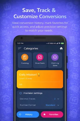 There are many reasons to choose Unit Converter Pro. It offers over 15 comprehensive categories, covering everything from basic length and weight to more complex units like energy, pressure, and clothing sizes. It also features a daily mission, where users can complete daily conversions to level up and become a "Unit Master." This adds a fun and competitive element to the app.