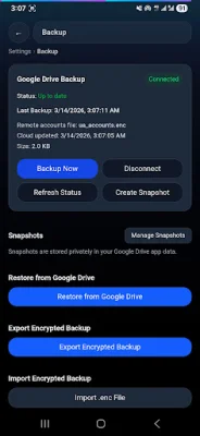 In addition to its security and privacy features, United Authenticator also offers backup and recovery tools to reduce the risk of losing access to your codes. These include support for a 12-word recovery phrase, encrypted backup export and restore, private cloud backup options, and snapshot-based recovery. These tools are designed to improve resilience while keeping your data under your control.