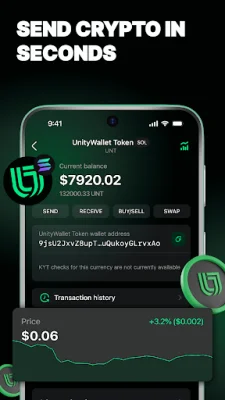 Security is a top priority for UnityWallet, and the app offers several measures to safeguard user assets. This includes AES-512 encryption, a secure 24-word recovery phrase, and biometric PIN authentication. The app also has a dedicated Security Center that provides real-time alerts, balance concealment, and quick recovery phrase verification for added peace of mind.