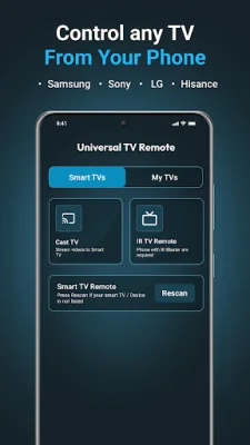 Transform your Android smart phone into a fully featured Universal TV Remote without needing a physical remote. With the Universal TV Remote for All TVs app, you can power your TV on or off, flip through channels, adjust volume, and even manage multiple TVs. This app is a complete solution for controlling your Smart TV, making it easier and more convenient for users.