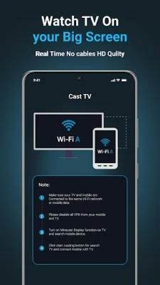 The Phone to TV Cast feature allows you to mirror your mobile screen onto the big screen, making your TV experience more interactive and fun. This feature depends on your streaming device and Wi-Fi network, so make sure your streaming device supports the media format and both devices are connected to the same Wi-Fi network for a smooth casting experience. During casting, you will have full control of your smart TV, including previous, next, pause, forward, rewind, volume up, and volume down.