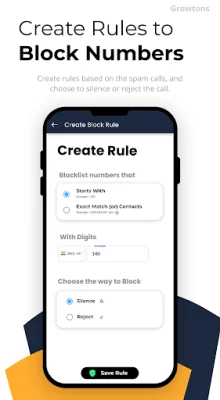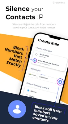 Setting up rules is easy and customizable. You can choose to block calls that begin with specific digits, or block calls from unknown numbers or contacts. You can also select how you want to block these calls - either by silencing them or rejecting them. And don't worry, our app will notify you whenever a call is blocked so you can stay updated.