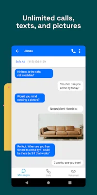 The app offers various features, including text and photo messaging, VoIP calling, call forwarding, and customizable voicemail greetings. It can be used on both Android and iOS devices and does not display any ads.