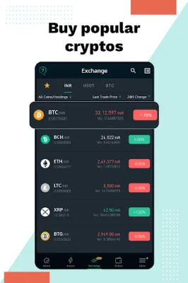 The app offers a variety of features to make crypto trading simple and accessible. These include lending, earning interest, a Systematic Buying Plan (SBP), a crypto basket, a crypto wallet, a crypto converter, Netki, auto sell, and the ability to buy Book My Show tickets and redeem coupons. There is also a "Shake and Earn" feature for users to earn rewards.