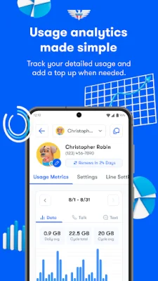 Our app also allows you to manage your account with ease. You have access to 24/7 human support, 365 days a year. You can add other users to your account to manage their lines as well. We prioritize the security of your account and offer two-factor authentication. Additionally, you can refer friends and family to our app and earn rewards.