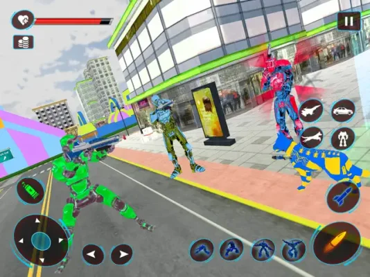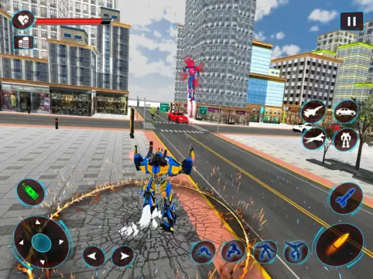 The key features of this game include the ability to play as a Robot Dog, Car, or Jet, giving you the freedom to transform and take on criminals from the ground or sky. You will also have the opportunity to complete exciting missions, such as rescue tasks and stopping enemy robots, to restore peace in the city. The game offers smooth and easy controls, allowing you to fly, drive, or run with simple and responsive movements. The 3D environments are realistic and detailed, immersing you in the game's world. You will also feel the action with powerful transformation and battle sounds, adding to the overall experience. The gameplay is story-based, providing a fun and engaging storyline to guide your missions and goals.