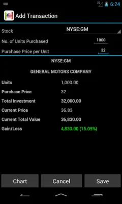 The app displays quotes for stocks and indexes in separate tabs, making it easy for users to navigate and access the information they need. Users can also search for and add stocks and indexes to their list, and view full details and charts for each stock or index. The charts are available in daily, weekly, monthly, and yearly views, and can be viewed in full screen for better analysis.