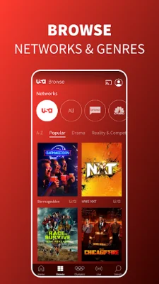 In addition to USA Network shows, the app also provides access to on-demand content from other NBCUniversal networks, including NBC, SYFY, Bravo, E!, Oxygen, MSNBC, CNBC, Universal Kids, Telemundo, and Universo. Users can also live stream their favorite NBCUniversal networks within the app. Each network has a dedicated page showcasing their hottest series, and users can filter shows by network and genre while browsing.