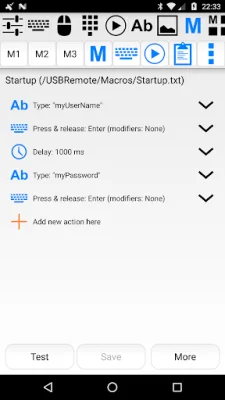 The USB Remote functionality of this application allows users to control their devices using a variety of methods. This includes using a soft keyboard or custom keyboard screen, a mouse or touchscreen with three buttons and a scroll wheel, a presentation remote, and the ability to record and execute macros. These macros can be grouped into customizable panels for easy access and execution with a single click. Users can also use voice recognition to dictate text, which can then be typed in real-time on their PC. Additionally, voice commands can be used to execute pre-defined actions while dictating. Other features include a numerical keyboard, media remote for playback and volume control, and the ability to type from clipboard, text files, SMS and email messages. Users can also scan and type QR codes and barcodes, and create home screen widget shortcuts for frequently used actions. This application can also function as a "Tasker" plugin.