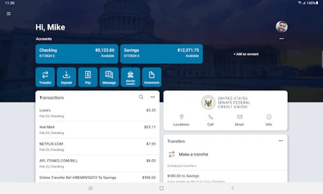 The app also allows you to make payments, whether it's to a company or a friend. You can easily transfer money between your accounts, making it convenient to manage your finances on the go. Additionally, you can deposit checks by simply taking a picture of the front and back, saving you a trip to the bank.