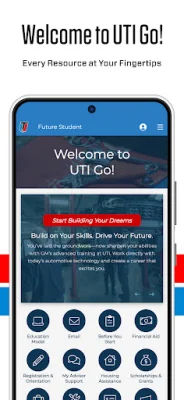 UTI Go is an app designed to support students from enrollment to graduation at Universal Technical Institute. It provides a range of tools and resources to help students stay informed, prepared, and connected throughout their educational journey. Whether you are just exploring training programs or already on campus, UTI Go has everything you need to guide you on your path and keep you on track.