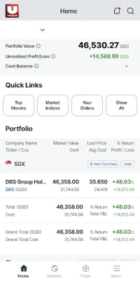 UTRADE SG is an application that allows users to easily view important details for trading in one place. With a customizable dashboard, users can keep track of market movements and take immediate action on trading opportunities, all while on the go. The app also allows users to monitor their order book and portfolio from anywhere, making it a convenient tool for traders.