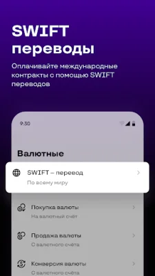Send swift transfers, exchange currency, and view information about currency contracts.