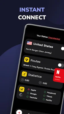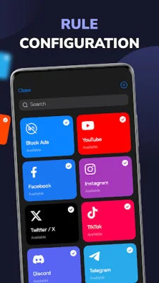 Another great feature of V2App is its Services - Based VPN Bypass. This allows you to effortlessly select individual apps, such as Facebook, Instagram, TikTok, YouTube, and more, to either route through the proxy or bypass it. This means you can stay secure where needed and have unrestricted access where you prefer.