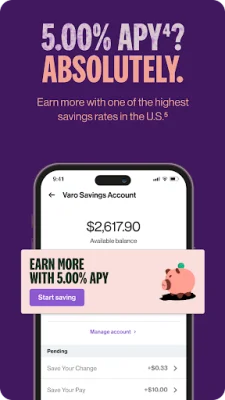 Varo also offers a high-yield savings account with easy auto-savings tools and no minimum balance required to open. Customers can earn up to 5.00% APY on balances up to $5,000 by meeting certain requirements. Varo's savings account has been highly rated by The Ascent, a financial review website.