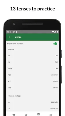 With 15 tenses to master, this app covers all the necessary aspects of Italian verb conjugation. You can also set daily goals to stay motivated and track your progress. The app offers flexible answering options, allowing you to either guess or type your answers. For better pronunciation, you can tap on any conjugation to hear it spoken clearly. This app is also a universal app, meaning it works seamlessly on both phones and tablets.