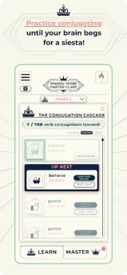 Our application is designed to make learning Spanish verbs an enjoyable experience. We offer game-like drills that make the learning process fun and engaging. Our Mastery Engine keeps track of the forms you know and those you need to practice, allowing you to identify and improve your weak points with maximum efficiency. With our new Test Out feature, you can progress even faster by testing out of verbs you already know!