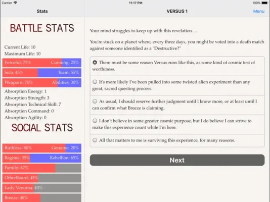 "VERSUS: The Lost Ones" is an exciting interactive novel written by Zachary Sergi, the author of the popular "Heroes Rise" trilogy. This 123,000-word story is the first in a new series and puts you in control of the narrative through your choices. The game is entirely text-based, allowing your imagination to run wild without the distraction of graphics or sound effects.