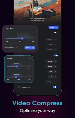 The app supports all major video, audio, and image formats, including MP4, MKV, AVI, MOV, OGV, GIF, 3GP, WEBM, MP3, WAV, AAC, M4A, OPUS, JPG, PNG, WEBP, and JPEG. It also offers a range of options for customization, such as resolution, frame rate, bitrate, and trimming precision. Users can choose from 4K, 1080p, 720p, or custom resolutions, and control frame rate and bitrate from 24fps to 120fps and 64kbps to 20Mbps, respectively.