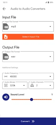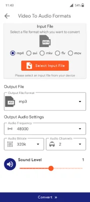 This application is a video converter that allows you to convert popular video file formats such as MP4, AVI, MKV, MOV, and FLV into audio file formats like MP3, WAV, AAC, OGG, FLAC, AIFF, and AU. It also offers the ability to adjust technical aspects of the video such as resolution, frequency, frame rate, rotation, channels, preset, and bitrate properties.