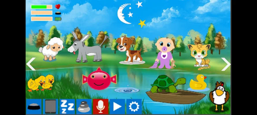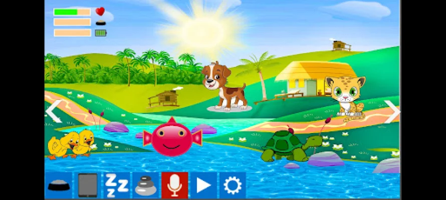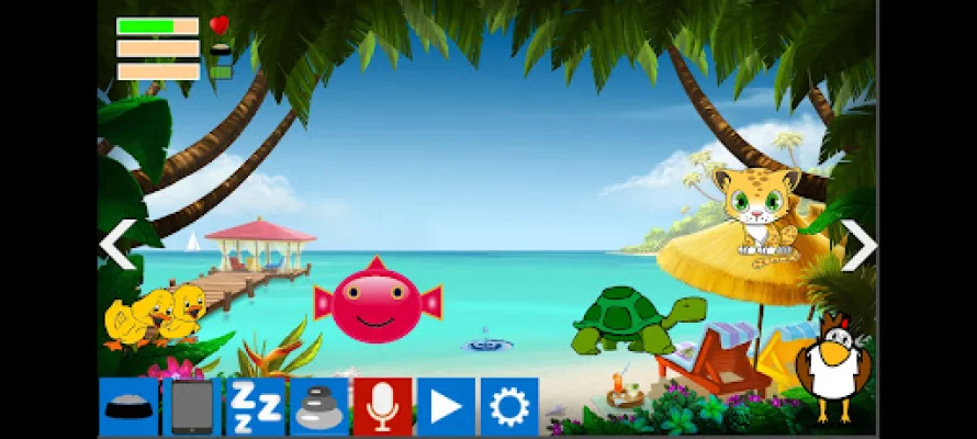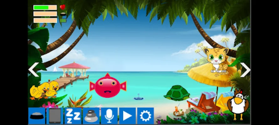 Virtual Pet Talking Animals is an interactive game that allows you to take care of your very own fish. Your fish needs your love and attention to stay happy and healthy, so it's up to you to feed it, put it to sleep, and play with it. With the talking feature, you can even have your fish repeat what you say and make your voice sound silly using the settings button.