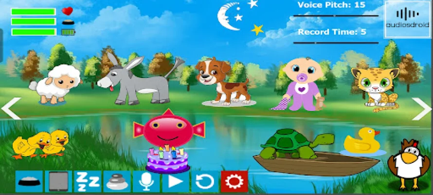 But the fun doesn't stop there! You and your fish can explore the beautiful lake in the forest and meet lots of animal friends along the way. From roosters and dogs to cats and sheep, there are plenty of sounds to hear and creatures to discover. And don't forget about the baby animals too!