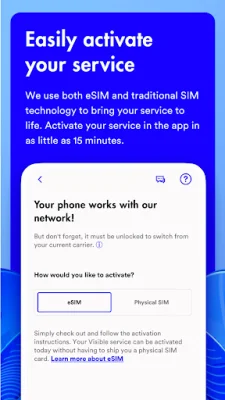 Activating your service with Visible is easy, whether you prefer using an eSIM or a physical SIM card. You can also transfer your phone number from another carrier and switch your service from one phone to another.