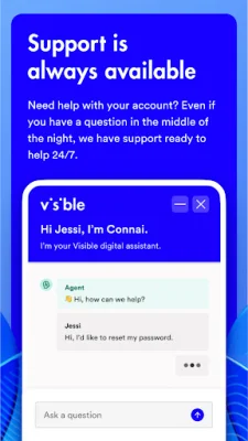With Visible, you can get 24/7 support right from the app. Chat with their Care team, tweet them @visiblecare, or message them on Facebook at facebook.com/visiblemobile/. You can also stay updated on Visible's latest news and promotions by following them on Instagram, TikTok, Twitter, Facebook, and YouTube.