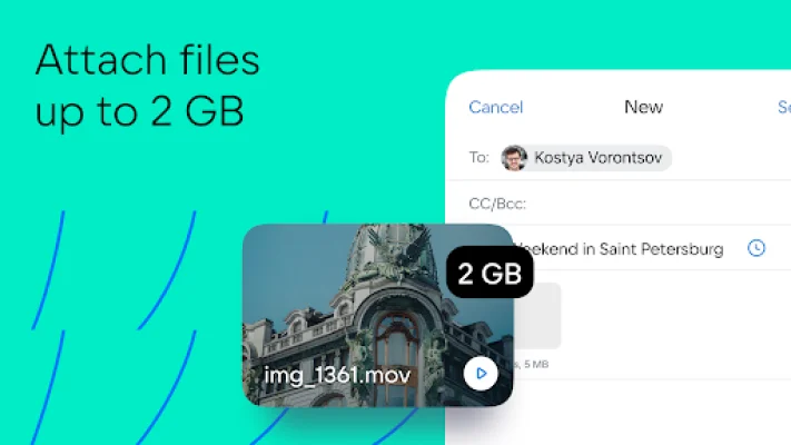 In addition to managing emails from various services, VK Mail also allows users to send large files up to 2GB without compressing them. The app also offers a variety of themes to customize the appearance of the inbox, including a dark theme for comfortable reading at night.