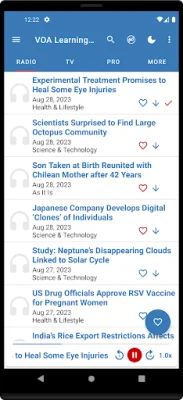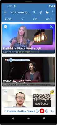 The app offers a variety of programs, including daily news updates, weekly shows about music and pop culture, and classic short stories by American authors. There are also programs focused on specific topics like health, education, and technology. Each program is designed to help users learn English through reading and listening to news and feature stories.