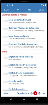 In addition to the written and audio content, the app also includes video programs that cover grammar, vocabulary, and pronunciation. These videos are suitable for learners preparing for exams like TOEFL, IELTS, and TOEIC. The app also provides resources for learning common phrases, words, and expressions, as well as irregular verbs, slang, and phrasal verbs.