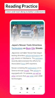The app also includes auto repeat and playback controls, which are essential for effective listening practice. Users can listen to the same audio multiple times and adjust the playback speed to their liking. This feature is especially helpful for those who are just starting to learn English.
