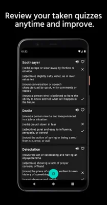 One of the main features of this application is its quizzes. These quizzes are designed to challenge users and test their mastery of vocabulary. By taking these quizzes, users can not only assess their own skills, but also improve them by learning new words and their meanings.
