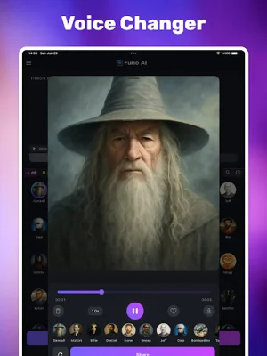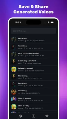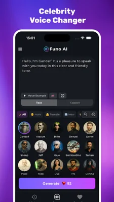 Once you've created your perfect voice, you can save it as an audio file, share it with friends, or use it in your own projects. The app has a clean and modern interface, and the voice processing is instant, giving you fast results. And with the Funo AI feature, you can transform your voice using advanced AI technology for memes, dubbing, roleplaying, gaming, or social media.