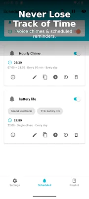 Voice Chime is a unique and essential personal time announcer that helps you stay on track with your daily tasks and routines. It is a versatile app that can be used for studying, working, exercising, or managing daily activities. With Voice Chime, you can customize reminders and hear them spoken aloud, making it easier to stay focused and in the flow.