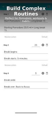 For those looking to boost their productivity, Voice Chime offers power features such as hourly chimes and interval timers, perfect for Pomodoro sessions. You can also create multi-step routines, known as "Playbooks," for complex tasks like morning routines, workouts, or meetings. And with deep customization options, you can choose your preferred TTS engine, voice, and speech rate.