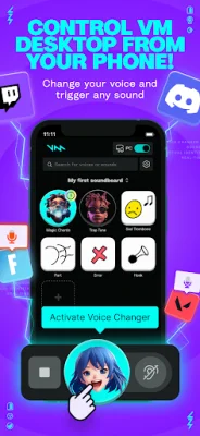 The app also offers seamless integration with the Voicemod V3 desktop app, allowing users to control their Voicemod experience on PC and Mac from their smartphone or tablet. This eliminates the need for alt-tabbing and frees up keybinds, making it easier to switch voices, play sounds, and adjust volume in real-time.