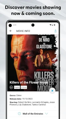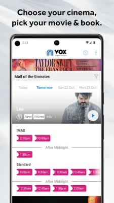The VOX Cinemas app is the perfect solution for movie-goers who want a hassle-free way to browse and book their favorite films. Whether you're shopping at the mall or planning a movie night, this app allows you to check which movies are playing and avoid long ticket queues by booking directly from your phone or tablet. With just a few clicks, you can save your favorite cinemas, skip the ticket line by scanning your e-ticket, and even pre-order your food and drinks before arriving at the cinema. The app also makes it easy to discover movie information, including trailers, cast credits, and synopses. You can search for your favorite cinema locations or VOX experiences, making it simple to find the perfect movie for your mood. Whether you're in the mood for a horror, action, thriller, or comedy film, the VOX Cinemas app makes it easy to find and book tickets in seconds. The app also offers a variety of signature VOX Cinemas experiences, such as MAX, IMAX, 3D and 4DX, THEATRE & GOLD, and KIDS. These experiences offer unique and immersive ways to watch your favorite movies, from spacious premium view seats to luxurious fine dining options. With the app, you can easily find and book the latest movies at the most exciting cinemas across the Middle East, including popular locations like Dubai, Doha, and Abu Dhabi. By downloading the VOX Cinemas app, you can elevate your entire movie experience to the next level. It's a convenient and effortless way to find and book the movies you love, when and where you want them. And with the app's user-friendly interface and quick search feature, you can enjoy maximum enjoyment with minimum effort. So why wait in long ticket queues or struggle to find the perfect movie? Download the VOX Cinemas app today and take your movie experience to the next level.