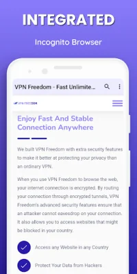 Aside from its fast and secure VPN connection, the app also offers additional features such as a strict no-logs policy, no time, bandwidth, or speed limits, and an integrated incognito browser. It also allows you to unblock blocked sites and apps, as well as geographically restricted websites, giving you access to content from all over the world.