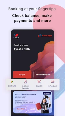 Even before logging in, Vyom offers a range of useful features such as the ability to scan and pay using BHIM UPI, view your balance and mPassbook, reset your login PIN, and use the gold loan calculator. You can also view product offers, search for IFSC codes, locate Union Bank of India branches and ATMs, and contact the bank for any queries or grievances. The app is available in 13 languages, making it accessible to a wider audience. With Vyom, you can easily manage your finances and access various banking services on-the-go, making your life more convenient and hassle-free.